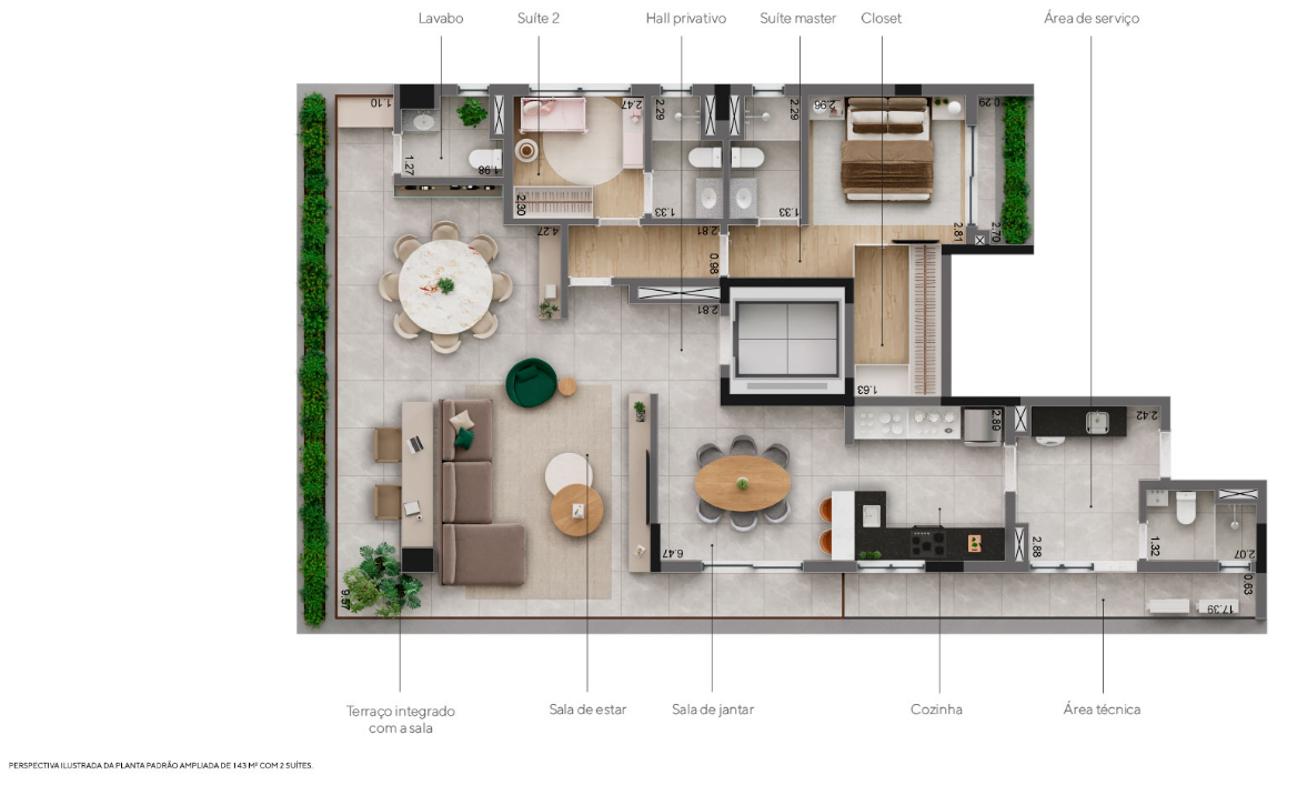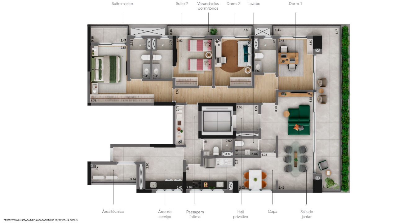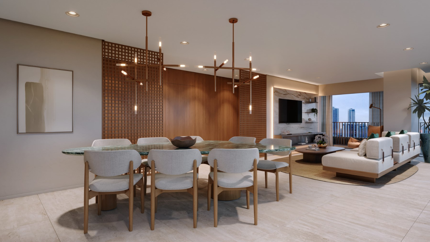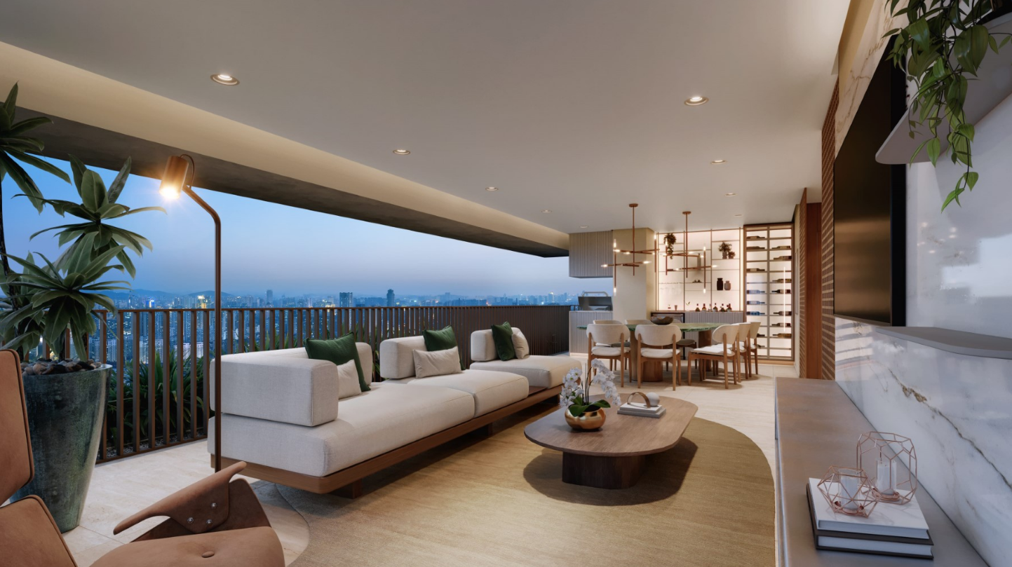 A fachada contemporânea, assinada por Barbara & Purchio, destaca-se pelo design imponente, enquanto o paisagismo de Marcelo Faisal valoriza a biofilia, criando áreas verdes que integram bem-estar e natureza ao cotidiano. O lazer é completo e pensado para todas as idades, incluindo piscinas coberta e descoberta, quadra recreativa, academia, spa, sauna, brinquedoteca, salão de festas, espaço gourmet, coworking e pet place, todos os ambientes entregues equipados e decorados. O empreendimento ainda conta com gerador que atende 100% das unidades e áreas comuns, portaria blindada, bicicletário e espaço delivery.